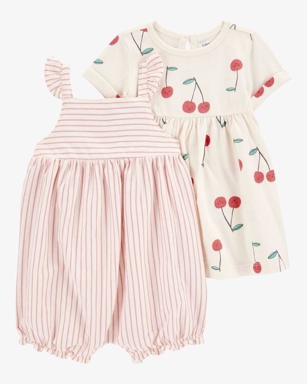 2 PIECE CHERRY DRESS AND STRIPED ROMPER SET – 1S529810