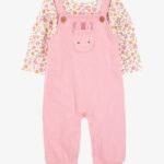 BABY 2-PIECE FLORAL BUNNY LONG-SLEEVE TEE AND COVERALL SET – PINK – 1S938510