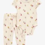 BABY 2-PIECE FLORAL SHORT-SLEEVE WAFFLE KNIT BODYSUIT PANT SET – IVORY – 1S927510