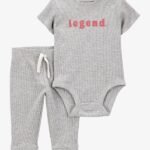 BABY 2-PIECE LEGEND SHORT-SLEEVE WAFFLE KNIT BODYSUIT AND PANT SET – GREY