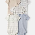 BABY BOY 5-PACK HIPPO MULTIPACK BODYSUITS – BROWN/BLUE/WHITE