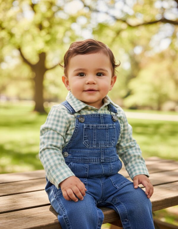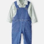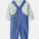 BABY BOY CHECKERED PRINT BODYSUIT OVERALL SET – BLUE/GREEN – 1T604610