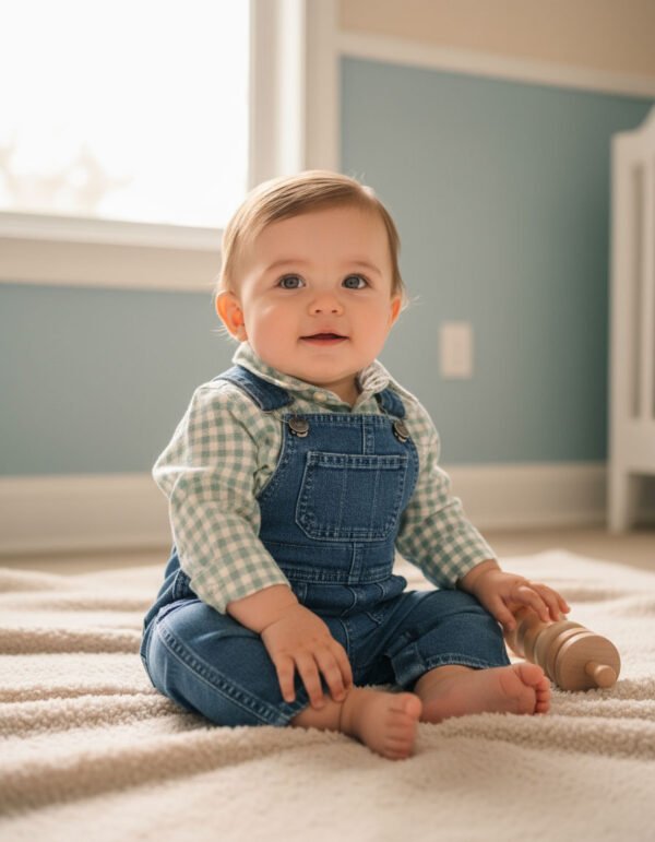 BABY BOY CHECKERED PRINT BODYSUIT OVERALL SET – BLUE/GREEN