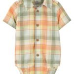 BABY BUTTON-DOWN PLAID ROMPER – 1Q979910