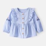 BABY GIRL EMBROIDERED COTTON LONG-SLEEVE TOP – BLUE