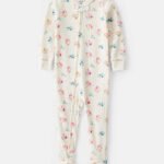 BABY GIRL FLORAL COTTON LONG-SLEEVE SNUG FIT 1-PIECE PAJAMAS – WHITE – 1T545210