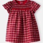 BABY GIRL SPECIAL OCCASION PLAID PRINT SHORT-SLEEVE DRESS – RED – 1T558110