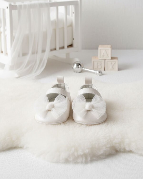 BABY GIRL TULLE BOW DRESS SHOES – WHITE – CR08264