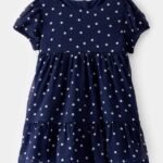 BABY POLKA DOT CHIFFON CRINKLE SHORT-SLEEVE DRESS – NAVY – 1T319310