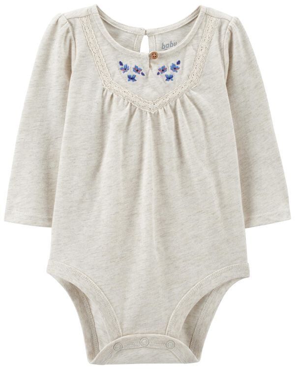EMBROIDERED FLORAL JERSEY BODYSUIT