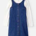 GIRLS 2-PIECE DENIM LONG-SLEEVE DRESS SET – 3T576910