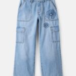 GIRLS HIGH-RISE DENIM CARGO JEANS – BLUE – 3T863010
