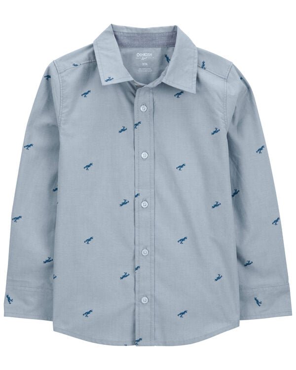 KID DINOSAUR PRINT LONG SLEEVE BUTTON DOWN SHIRT BLUE – 3S009410