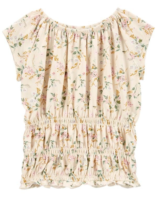 KID FLORAL PRINT SMOCKED JERSEY TOP