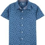 KID SHARK PRINT BUTTON-FRONT SHORT SLEEVE SHIRT – 3Q509213