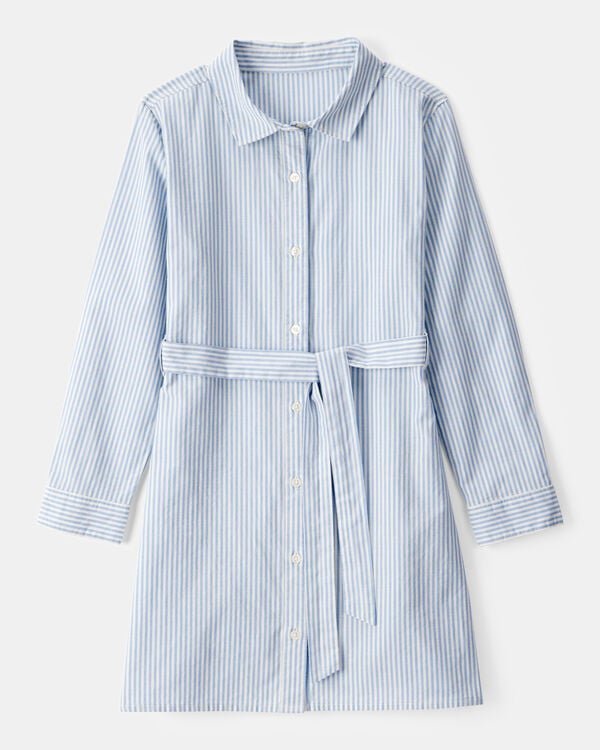 KID STRIPED BUTTON-DOWN LONG-SLEEVE SHIRT DRESS – BLUE/WHITE