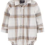 LONG-SLEEVED PLAID BODYSUIT WITH FRONT BUTTONS – 1Q091110