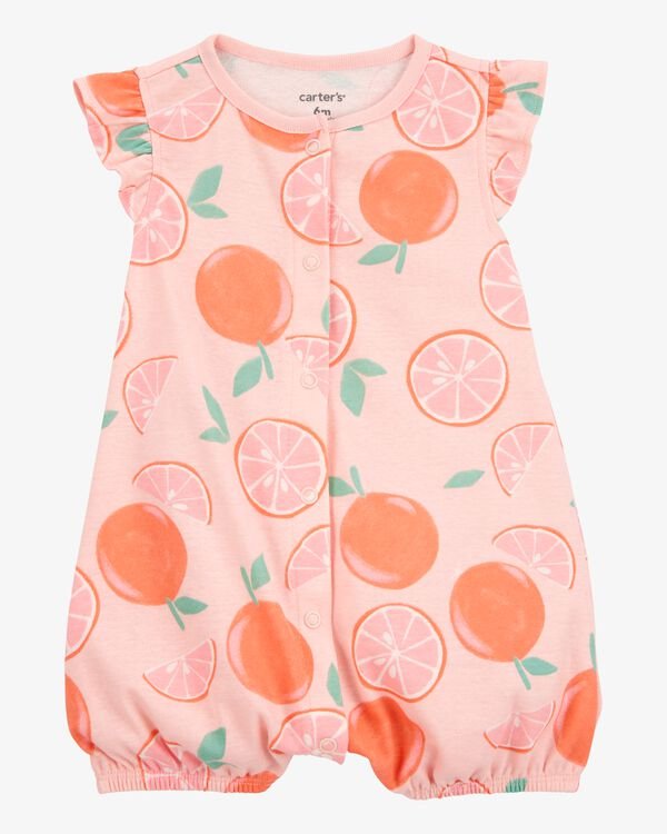ORANGE PRINT SNAP UP COTTON ROMPER
