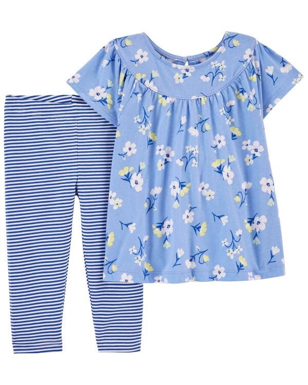 TODDLER 2-PIECE FLORAL TOP AND STRIPED LEGGING SET