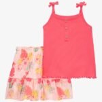 TODDLER 2-PIECE RIBBED TANK AND FLORAL PULL-ON SKORT SET – PINK – 2S910910