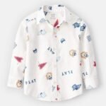 TODDLER BOY VARSITY BEAR PRINT LONG-SLEEVE BUTTON-DOWN SHIRT – WHITE