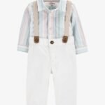 TWO PIECE SET WITH BUTTON DOWN SHIRT AND TROUSERS WITH SUSPENDERS – 1S990510